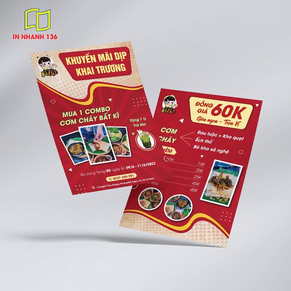 Với In Nhanh 136, mỗi tờ rơi được tạo ra không chỉ là một sản phẩm in ấn, mà còn là một tác phẩm nghệ thuật, một công cụ marketing mạnh mẽ giúp doanh nghiệp của bạn ghi dấu ấn trong lòng khách hàng. Chúng tôi cam kết phục vụ hơn cả sự mong đợi của bạn về chất lượng, tốc độ và giá cả.