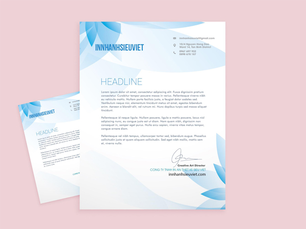 Giấy tiêu đề – Letterhead là một ấn phẩm quan trọng trong bộ nhận diện thương hiệu. Chúng là cầu nối quan trọng trong việc truyền tin giữa doanh nghiệp với khách hàng, đối tác và nhân viên. Được sử dụng trong các bảng báo giá, in tài liệu, hợp đồng,… thay vì 1 tờ giấy A4 trắng trơn. Đặc biệt là thư ngỏ, hay hợp đồng quan trọng. Đó là lý do chúng rất được các doanh nghiệp dùng vì tính hiệu quả của giấy tiêu đề mang lại. Do đó, nếu bạn chưa có thì in giấy tiêu đề ngay cho riêng mình tại In Nhanh 136.